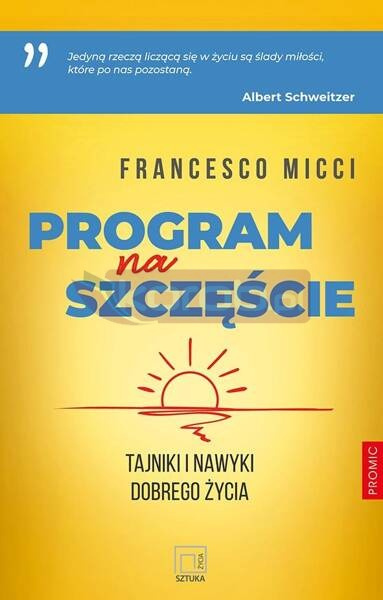 Książka niespotykana. Zawiera mnóstwo ważnych praktycznych wskazówek "Twojego programu na szczęście". Czy mogę być szczęśliwy tu i teraz, mimo że życie naraża mnie na niejedno bolesne doświadczenie? Czy mogę czerpać zadowolenie ze spraw i rzeczy, które często sprawiają tyle zawodu i przykrości? Czy mogę cieszyć się nie tylko czymś, lecz także kimś - a nawet swoją własną osobą, historią i egzystencją? Tak, bowiem nasze życie jest wyjątkowe. Szczęście natomiast nie oznacza beztroskiej egzystencji w świecie wolnym od trudności i rozczarowań, lecz siłę przebaczania, odwagi i miłości. Być szczęśliwym na co dzień to cieszyć się razem z innymi - ale też cieszyć się sobą; to wyrażać swoje opinie - ale też przyznać się do błędu; to dawać z siebie jak najwięcej - ale też rozpoczynać za każdym razem od nowa, jeśli trzeba; to bronić własnej przestrzeni - ale też wycofać się z niej w imię uprzejmości i współczucia. Szczęście jest na wyciągniecie ręki - twojej ręki! Od dzisiaj możesz kształtować w sobie postawę "świadomego szczęścia". Francesco Micci dzieli się z czytelnikiem cennymi refleksjami, a rozważania teoretyczne przeplata praktycznymi sugestiami dotyczącymi odkrywania szczęścia na co dzień. Rady ujmuje w formie konkretnych propozycji, zbierając je na końcu każdego rozdziału pod nagłówkiem "Twój program na szczęście..." i wskazując, jak realnie można kształcić w sobie właściwą dyspozycję - gotowość do bycia szczęśliwym. Wkrocz na drogę ku szczęściu już dziś!