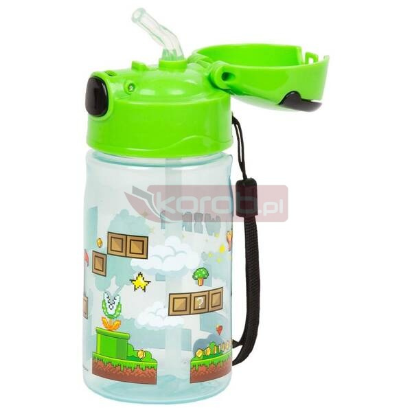 Przezroczysty bidon z nadrukiem o pojemności 330ml. Bidon wykonany z bezpiecznego i wytrzymałego na upadek tworzywa, wolnego od BPA. Posiada chowany ustnik oraz pokrywkę zabezpieczającą, która otwiera się przy pomocy przycisku. Bidon posiada poręczny kształt idealny dla dziecięcej ręki