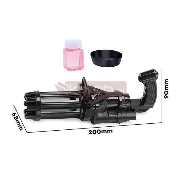 Bubble Terminator to super wydajny pistolet na bańki. Jego działanie jest dziecinnie proste - po prostu zanurzasz końcówkę w dołączonym do zestawu zbiorniku na płyn, naciskasz spust, a z jego 9 dysz natychmiast wylatują setki baniek! Super zabawa bez końca ! Zestaw zawiera : pistolet zasilany 3 bateriami typu AA nie zawartymi w zestawie, zbiornik na płyn, buteleczka płynu do baniek.
