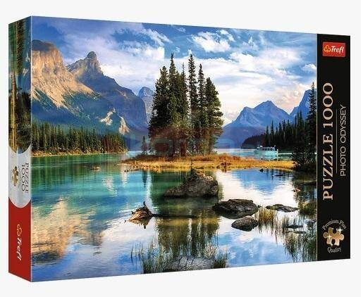 Puzzle Spirit Island, Kanada przedstawiają malutką wyspę na jeziorze Maligne. Po ich ułożeniu powstanie obraz o wymiarach 683x480 mm.