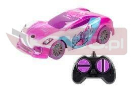 Wyścigówka w dziewczęcym wydaniu! Zdalnie sterowany samochód potrafi jeździć we wszystkich kierunkach, a kieruje się nim za pomocą dołączonego do zestawu pilota. Stylowe, fioletowe opony i urocza karoseria dodają autku niepowtarzalnego charakteru. Samochód i pilot zasilane są bateriami typu AA (niezawarte w zestawie)