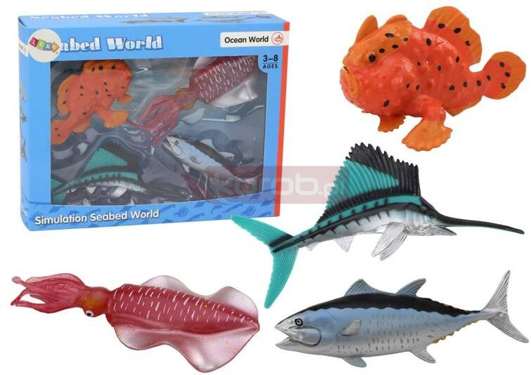 Zestaw Figurek Zwierzęta Morskie Ocean Ryby Kałamarnica 4 Sztuki Zestaw figurek zwierząt morskich to nie tylko kolekcjonerska przyjemność, ale także edukacyjna i kreatywna zabawa. W skład zestawu wchodzą 4 imponująco realistyczne modele: 3 rybki w różnych kolorach i kształtach oraz jedna fioletowa kałamarnica. Każda figura została starannie odwzorowana, zachowując charakterystyczne cechy każdego zwierzęcia. Te solidne figurki zostały wykonane z wytrzymałego materiału, gwarantując trwałość i odporność na intensywne użytkowanie. Dzięki wysokiej jakości wykonania, są one nie tylko estetycznym dodatkiem do kolekcji, ale również doskonałym narzędziem do nauki. Dzieci mogą zgłębiać tajniki świata morskiego, poznając różnorodność jego mieszkańców i ich charakterystyczne cechy. Zestaw ten nie tylko rozwija wyobraźnię i kreatywność, ale także promuje świadomość ekologiczną oraz szacunek dla przyrody morskiej. To doskonała propozycja dla małych odkrywców i miłośników oceanu, którzy chcą poszerzać swoją wiedzę na temat fascynującego świata podwodnego. Wymiary opakowania: 24,5cm x 19cm x 6,5cm Posiada certyfikat CE, ponadto jest zgodny z normą EN71. Przeznaczony dla dzieci powyżej 3 roku życia.