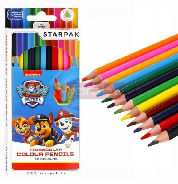 Komplet 12 kredek ołówkowych trójkątnych w kartonowym pudełku z licencją Psi Patrol.