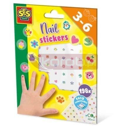 Te naklejki firmy SES Creative zostały opracowane z myślą o najmniejszych, dziecięcych paznokciach. Łatwe w nakładaniu i usuwaniu. Opakowanie zawiera 198 naklejek z kolorowymi obrazkami. Naklejki łatwo przyczepia się do paznokci za pomocą wody.