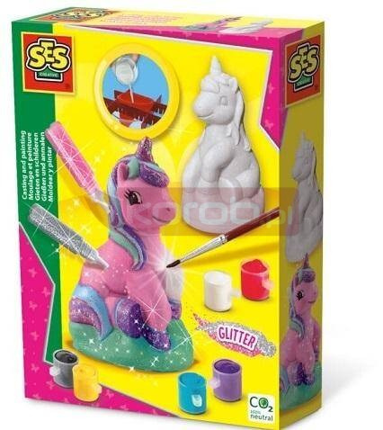 Popołudnie z castingiem i malowaniem z dziećmi! Zestawy do odlewania i malowania firmy SES Creative z pewnością zapewnią Ci dobrą zabawę i kreatywne rękodzieło! Dzięki temu zestawowi możesz zrobić kilka uroczych jednorożców za pomocą lateksowej formy. Formę można łatwo wypełnić gipsem i wodą. Gdy tynk stwardnieje, dzieci mogą wykazać się kreatywnością za pomocą pędzla i sześciu kolorów farby, aby stworzyć własne, niepowtarzalne gipsowe figurki. Klej brokatowy w dwóch kolorach doda Twojemu projektowi rękodzielniczemu blasku! Postępuj zgodnie z instrukcjami, aby stworzyć prawdziwe dzieła sztuki 3D.