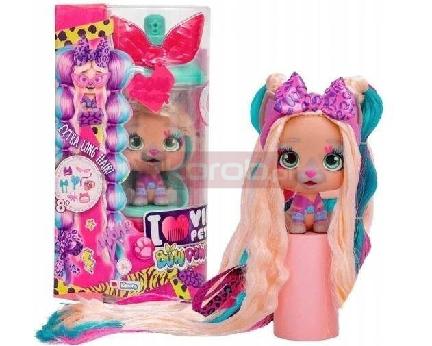 VIP PETS BOW POWER mogą mieć najbardziej kolorowe i modne fryzury! Do zebrania jest 6 szczeniaczków: Kim, Natty, Aurora, Shiara, Gwen i Juliet. Każda lalka to ponad 9 niespodzianek i ponad 6 różnych akcesoriów do włosów.