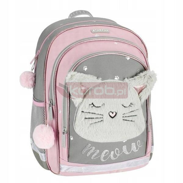 KOTEK PLECAK SZKOLNY Z PLUSZOWYM KOTKIEM dla dziewczynki