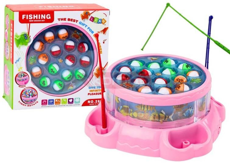 Gra Łowienie Rybek Wędki Światła Dźwięki Różowa Gra Łowienie rybek różowa to niezwykła zabawka, która zachwyci każdego małego gracza swoim urokiem i ekscytującą rozgrywką. Wykonana w przyjemnym różowym kolorze, ta gra nie tylko zapewnia wspaniałą zabawę, ale także rozwija zręczność i refleks dziecka. Po uruchomieniu gry, magiczne jeziorko zaczyna się kręcić, tworząc dynamiczne i ekscytujące otoczenie dla łowców rybek. Co jakiś czas, każda rybka wynurza się z wody, kusząc graczy do szybkiego złapania jej na wędkę. Wspaniała rywalizacja sprawia, że zabawa jest pełna emocji i radości. Zestaw jest wyposażony w dodatkowe efekty świetlne i dźwiękowe, które dodają dodatkowej atrakcyjności i interakcji. Podczas działania zabawki, jeziorko obraca się harmonijnie, a w nim unoszą się kolorowe rybki akwariowe, co tworzy magiczną atmosferę wokół. Całości towarzyszy przyjemna melodia, która dodaje uroku i radości do całej zabawy. To nie tylko gra, ale prawdziwe doświadczenie, które rozwija zdolności manualne, spostrzegawczość oraz umiejętności koordynacji ruchowej u dziecka. Gra Łowienie rybek różowa to niezapomniana przygoda, która zapewni godziny rozrywki i nieustannej zabawy. Gra zasilana jest na baterie 3x 1.5V AA, które nie są elementem zestawu. Wymiary gry: 19,5cm x 19,5cm x 8,5cm Wymiary opakowania: 20cm x 19,5cm x 9cm Posiada certyfikat CE, ponadto jest zgodny z normą EN71. Przeznaczony dla dzieci powyżej 3 roku życia.