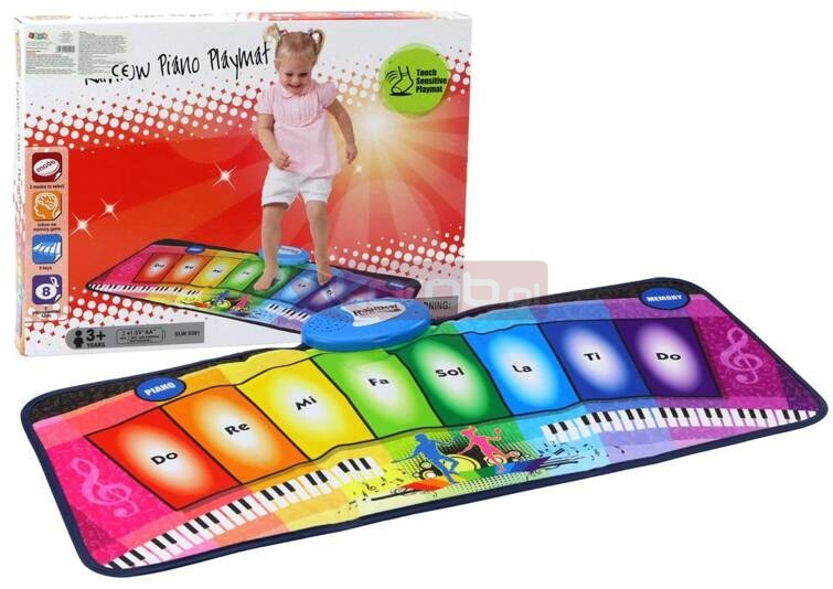 Mata Muzyczna Taneczna Edukacyjna Pianinko Tęczowe Mata Muzyczna Pianinko to niezwykła zabawka, która otwiera dzieciom drzwi do fascynującego świata muzyki poprzez interaktywną zabawę. Wyróżnia ją nie tylko kolorowe pianinko widniejące na macie, ale przede wszystkim bogactwo możliwości, które oferuje. Zaczynając od samego pianinka - jego klawisze stają się wirtualną klawiaturą, którą dziecko obsługuje poprzez naciskanie odpowiednich przycisków na macie. To nie tylko sposobność do odtwarzania gotowych melodii, ale przede wszystkim do twórczej improwizacji i eksperymentowania z dźwiękami. Oferowane 8 różnorodnych melodii w trybie Piano dostarcza dzieciom inspiracji i zachęca do odkrywania różnorodności muzyki. Dzięki temu mogą wyrażać swoje emocje i fantazje poprzez dźwięki, co stymuluje ich kreatywność i wyobraźnię. Najciekawszym aspektem tej zabawki jest jednak tryb gry, który uruchamiany jest poprzez klawisz Memory. Dziecko wciela się tutaj w rolę małego pianisty, który powtarza dźwięki odtwarzane przez matę. To nie tylko zabawa, ale także forma treningu dla pamięci, koncentracji i umiejętności słuchowych. Mata Muzyczna Pianino nie tylko dostarcza rozrywki, ale także rozwija szereg umiejętności poznawczych i motorycznych dziecka. Poprzez interakcję z muzyką stymuluje jego rozwój sensoryczny, poznawczy i emocjonalny. Jest to zatem niezastąpiona zabawka dla małych miłośników muzyki, którzy chcą odkrywać jej tajemnice w sposób zarówno przyjemny, jak i edukacyjny. Mata zasilana jest na baterie 2x 1.5V AA, które nie są elementem zestawu. Wymiary maty: 80 x 35 cm Wymiary opakowania: 39cm x 28cm x 5cm Posiada certyfikat CE, ponadto jest zgodny z normą EN71. Przeznaczony dla dzieci powyżej 3 roku życia.