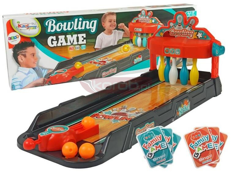 Gra w kręgle to super aktywność, dzięki której Twoje dziecko będzie mógł ciekawie spędzić wolny czas. Wersja stołowa zachęci rodzinę i znajomych do zabawy. W trakcie rywalizacji maluchy rozwiną w sobie, celność, precyzję i nauczy uczciwej rywalizacji. Zabawę można rozłożyć na stole i rozpocząć zabawę! Ta mini gra jest bardzo łatwa w grze, jeden z zawodników za pomocą wyrzutni strzela do kręgli, musi zbić wszystkie kręgle, aby otrzymać punkt. Idealnie sprawdzi się jako gra w pojedynkę lub w dwie osoby toczący rywalizację. Po każdym zbiciu plastikowych kręgli zawodnik otrzymuje kartę z punktem. Kto pierwszy zdobędzie wszystkie, wygrywa! Rywalizacja wzbudzi gorące emocje ! Elementy zestawu: - 3 plastikowe piłki pomarańczowy - karty z punktami - stołowa gra kręgle - mechanizm do strzelania piłką Wymiary mini kręgle: 62 cm x 24 cm x 22 cm Wymiary opakowania: 72 cm x 24 cm x 8 cm Gra przeznaczona dla 1,2 osób. Dla dzieci powyżej 3 roku życia. Zgodna z normą EN71 i certyfikatem CE.