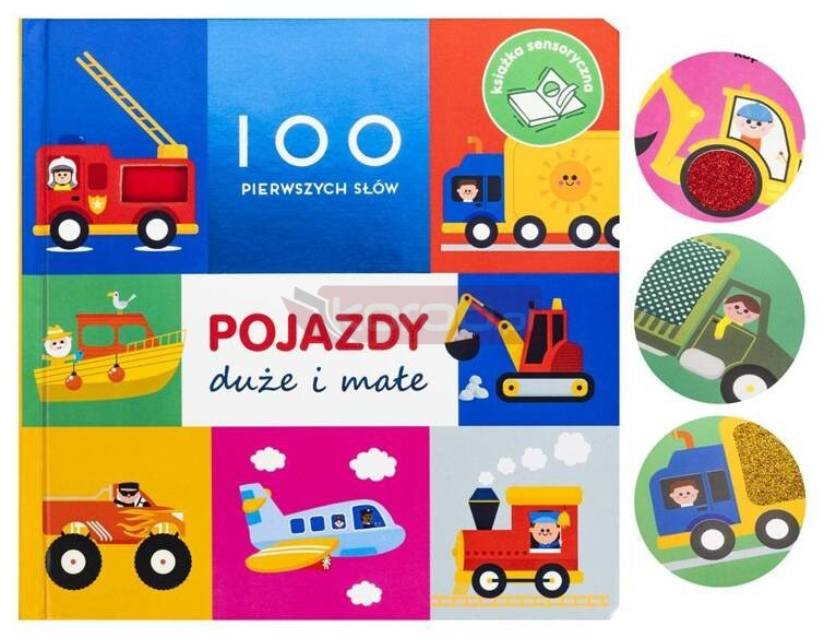 To tętniąca kolorami książka, w której najmłodsi znajdą 100 pojazdów. Mnóstwo zabawy zapewnią elementy sensoryczne znajdujące się na każdej rozkładówce: materiały o różnych strukturach, mięciutkie futerka, mieniące się brokaty, wycięte kształty. Doskonale stymulują one zmysły i pozytywnie wpływają na rozwój manualny.