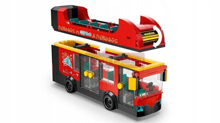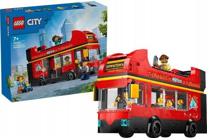 Zapewnij siedmiolatkom i starszym dzieciom ciekawe przygody podczas wycieczki po mieście dzięki zestawowi LEGO® City Czerwony, piętrowy autokar (60407).