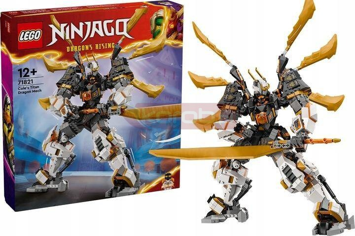 Dzięki zestawowi Tytanowy smok-mech Cole’a (71821) dzieci w wieku od 12 lat mogą odtwarzać sceny z drugiego sezonu serialu NINJAGO® Powstanie Smoków. To największy tytanowy mech NINJAGO, jaki kiedykolwiek się pojawił. Ma ruchome ręce, nogi, głowę,ciało i przeguby, które umożliwiają ustawianie go w bojowych pozach. Całość uzupełniają ruchome smocze skrzydła i wielki miecz.