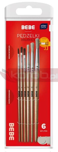 Zestaw 6 pędzelków o różnych szerokościach i kształtach końcówek. Naturalne włosie