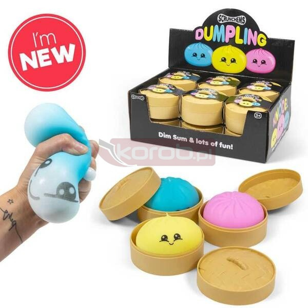 Urocza bułeczka gniotek jest niezwykle miękka i plastyczna. Dostępna w trzech pastelowych kolorach. Aby uczynić zabawkę jeszcze bardziej atrakcyjną, dołączono pojemnik w stylu plecionego bambusa. Bułeczkę ozdobiono uśmiechniętą buźką.