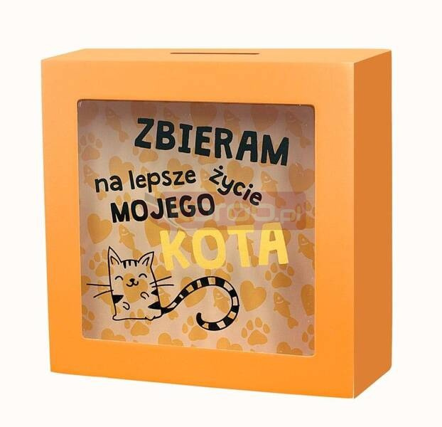 Skarbonka SKARBBOXY SBB-004 Lepsze życie kota Skarbonka z serii SKARBBOXY to doskonały i niezwykły pomysł na prezent, który idealnie komponuje się w każdym wnętrzu, stanowiąc jednocześnie piękną dekorację. Wykonana z solidnej płyty MDF, skarbonka ta posiada specjalny otwór na górze do wrzucania monet i banknotów. Na szklanej szybce nadrukowany jest ciekawy napis pasujący do różnych okazji, a tło wewnątrz skarbonki zostało starannie zaprojektowane, prezentując przepiękną grafikę, podkreślającą wyjątkowy charakter skarbonki. Dzięki szklanej powierzchni można obserwować, jak skarbonka stopniowo wypełnia się oszczędnościami.. Tył skarbonki jest otwierany, umożliwiając wydobycie zgromadzonych środków na spełnienie jednych marzeń, jednocześnie zachęcając do oszczędzania na kolejne cele. Cechy szczególne: typ: skarbonka do postawienia, wielkość: 16 cm x 16cm, głębokość 5 cm okazja: ogólna