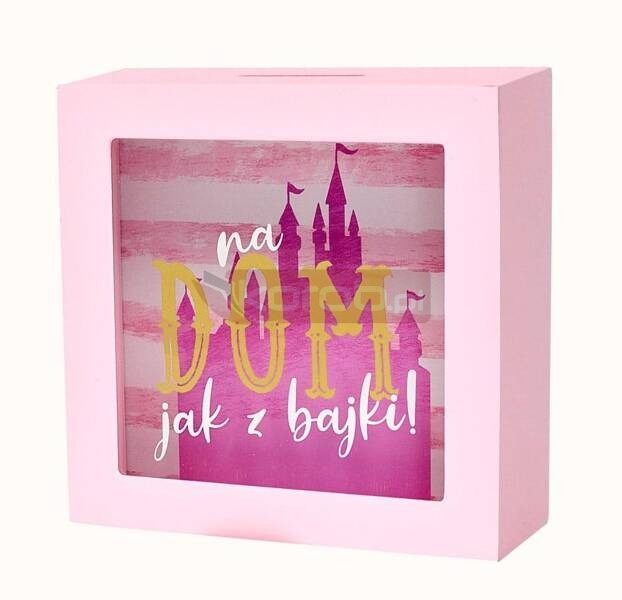 Skarbonka SKARBBOXY SBB-012 Dom jak z bajki Skarbonka z serii SKARBBOXY to doskonały i niezwykły pomysł na prezent, który idealnie komponuje się w każdym wnętrzu, stanowiąc jednocześnie piękną dekorację. Wykonana z solidnej płyty MDF, skarbonka ta posiada specjalny otwór na górze do wrzucania monet i banknotów. Na szklanej szybce nadrukowany jest ciekawy napis pasujący do różnych okazji, a tło wewnątrz skarbonki zostało starannie zaprojektowane, prezentując przepiękną grafikę, podkreślającą wyjątkowy charakter skarbonki. Dzięki szklanej powierzchni można obserwować, jak skarbonka stopniowo wypełnia się oszczędnościami.. Tył skarbonki jest otwierany, umożliwiając wydobycie zgromadzonych środków na spełnienie jednych marzeń, jednocześnie zachęcając do oszczędzania na kolejne cele. Cechy szczególne: typ: skarbonka do postawienia, wielkość: 16 cm x 16cm, głębokość 5 cm okazja: ogólna