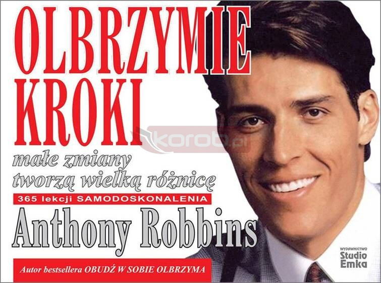 "Olbrzymie kroki" Anthony Robbinsa są planem na życie. Są elementarzem osobistego i zawodowego sukcesu. - Peter Guber, prezes rady nadzorczej SONY Pictures Entertaiment Dzięki "Olbrzymim krokom" mam teraz codzienny dostęp do technik Anthony Robbinsa, odnosząc wrażenie, że dostaje gotowy przewodnik pomagający wznieść się na szczyty człowieczeństwa, przywództwa i możliwości twórczych. - Ken Blanchard, autor bestsellerów, serii: Jednominutowy menedżer oraz Zachwyceni zwolennicy Czym jest natchnienie, jeśli nie jest poparte działaniem? Książka "Olbrzymie kroki" jest oparta na najlepszych wzorcach, metodach, zasadach i strategiach, przedstawionych w książce Anthony Robbinsa, "Obudź w sobie olbrzyma". Tym razem Robbins proponuje codzienne, drobne pomysły i działania - ćwiczenia, które złożą się na OLBRZYMIE KROKI, wzbogacające Twoje życie. Od podstawowej umiejętności podejmowania decyzji do bardziej szczegółowych metod, mogących polepszyć Twoje stosunki z innymi, finanse i Twoje zdrowie. Robbins ukazuje Ci, jak osiągnąć najlepsze rezultaty w najkrótszym czasie. Anthony Robbins uważany jest za jednego z najpierwszych liderów na świecie od ponad 20 lat. Autor paru poczytnych książek, w tym dwóch bestsellerów "Nasza moc bez granic" i "Obudź w sobie olbrzyma". Konsultant wielu wybitnych osobistości świata polityki, biznesu, kultury i sportu.