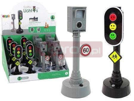 Światła drogowe są czarne, a na ich małych lampkach namalowane są minki, symbolizujące możliwość przejścia przez przejście dla pieszych (zła na czerwonym, oczekująca na żółtym, uśmiechnięta na zielonym świetle). Poprzez naciśnięcie guziczka włącza się światło. Fotoradar ze znakiem ograniczenia prędkości do 60 km, jest w kolorze szarym, posiada efekty świetlne i dźwiękowe, które imitują rzeczywiste robienie zdjęć. Zabawka jest wspaniałym narzędziem do nauki i zapoznawania dzieci z zasadami bezpieczeństwa na drodze. Dzięki tej zabawce, dzieci zdobędą umiejętność rozpoznawania sygnalizacji świetlnej i będą świadome, że bezpieczne jest przechodzenie przez jezdnię tylko na zielonym świetle. Produkt wykonany jest z wysokiej jakości plastiku, a jego rozmiar wynosi 15,5 cm. Zabawka posiada certyfikat CE i jest zgodny z normą EN71. Produkt przeznaczony jest dla dzieci powyżej 3. roku życia.