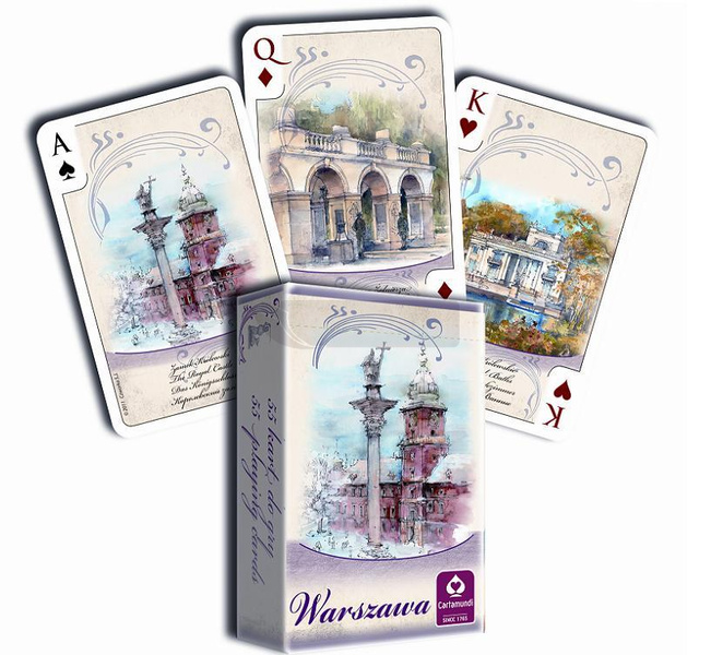 Talia kart do Brydża. Na awersach widnieją najefektowniejsze zabytki Warszawy malowane akwarelą, stanowią urokliwy podarek.