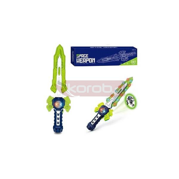 Miecz posiada efekty świetlne i dźwiękowe. Po naciśnięciu przycisku znajdującym się na rączce miecza ostrze rozświetla się dając super efekt i dźwięk. Dodatkowo uchwycie znajduje się projektor, który po wciśnięciu przycisku wyświetla obrazek robota na ścianie. Miecz posiada spektakularne efekty świetlne, co na pewno sprawi wiele radości z zabawy