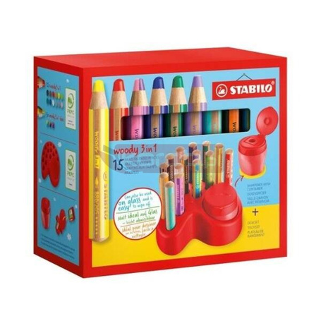 Zestaw 15 kredek woody 3in1 z temperówką w pojemniku. STABILO woody 3 in 1 to super grube kredki, które wystarczają na bardzo długo.