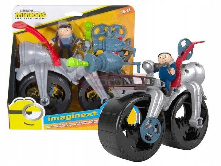 Aby móc jeździć na rakietowym rowerze Gru napędzanym Minionami, wystarczy przymocować Minionki do opon. (Figurki Minionków sprzedawane są osobno.) Imaginext.