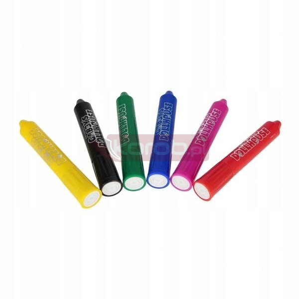 W zestawie znajduje się 6 kredek w kolorze: granatowym, żółtym, czerwonym, c. zielonym, czarnym, różowym