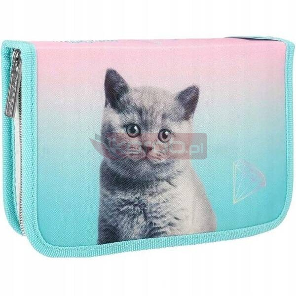 Piórnik jednokomorowy bez wyposażenia, zapinany na zamek błyskawiczny.