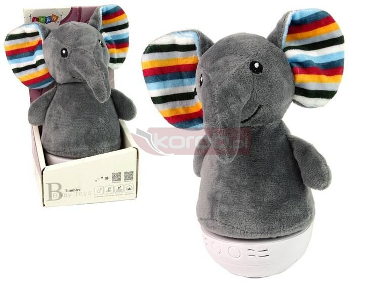 Wańka Wstańka Słoń Lampka Muzyka Wańka wstańka to pierwsza ulubiona zabawka, która już stała się tradycyjną. Zabawki tego typu nadal są uwielbiane przez dzieci na całym świecie. Dziecko przewraca zabawkę, jednak ona dzięki odpowiednio wbudowanemu środkowi ciężkości wciąż wraca do pionu, jest to fascynująca sprawa dla małych odkrywców. Zastąpi również funkcje lampki, zmieniające kolory i spokojna melodia będzie idealną pomocą w zasypianiu dla Twojego dziecka. Słoń na samym dole ma dwa przyciski, jeden odpowiada za uruchomienie zabawki, drugi za zmianę melodii. Każda z piosenek jest spokojna i wyciszająca. W trakcie piosenek lampka świeci stłumionym światłem, zmieniając cyklicznie kolory, pełni to funkcje lampki nocnej. Pokrowiec w kształcie słonia jest zdejmowany, gdy tylko się ubrudzi, możesz wrzucić go do prania. Wymiary zabawki: 9 cm x 9 cm x 18 cm Wymiary opakowania: 10 cm x 9 cm x 19 cm Zabawka zasilana trzema bateriami 1,5 V AAA, brak w zestawie. Zgodne z normą En71 i certyfikatem CE.