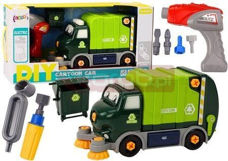 Każdy chłopiec, ciekawy świata wielkich maszyn, teraz może zamienić się w małego mechanika dzięki tej zielonej śmieciarce kreskówkowej do rozkręcania. To fascynująca zabawka, która pozwala dzieciom odkrywać, z czego są zbudowane te imponujące pojazdy. Śmieciarka jest w żywym zielonym kolorze, co przyciąga uwagę i zachęca do zabawy. Podczas jazdy, żółte miotły z przodu pojazdu zaczynają się kręcić, dodając zabawie interaktywności i realizmu. Dzieci mogą wyobrazić sobie, że naprawdę czyszczą ulice, co dodaje dodatkowego elementu ekscytacji. Zabawka jest jeszcze bardziej realistyczna dzięki dołączonemu śmietnikowi, który pozwala na symulowanie rzeczywistego zbierania śmieci. To doskonały sposób na naukę o znaczeniu czystości i recyklingu w formie zabawy. Do zestawu dołączony jest także zestaw narzędzi, który pozwala na pełne rozkręcanie i skręcanie pojazdu. W jego skład wchodzi wiertarka, śrubokręt oraz trzy wymienne końcówki. Te narzędzia są bezpieczne i łatwe w użyciu, dzięki czemu dzieci mogą czuć się jak prawdziwi mechanicy, rozwijając swoje zdolności manualne i koordynację ręka-oko. Śmieciarka kreskówkowa do rozkręcania to nie tylko wspaniała zabawa, ale także narzędzie edukacyjne. Pomaga w rozwijaniu umiejętności logicznego myślenia, cierpliwości i kreatywności. Dzieci uczą się poprzez doświadczenie, rozwiązując problemy i eksperymentując z mechanizmami pojazdu. To idealny prezent dla każdego małego odkrywcy, który chce połączyć zabawę z nauką. Zielona śmieciarka kreskówkowa do rozkręcania zapewni wiele godzin angażującej i edukacyjnej zabawy, inspirując przyszłych inżynierów i mechaników. Wiertarka zasilana jest na baterie 3x 1.5V AAA, które nie są elementem zestawu. Wymiary śmieciarki: 33cm x 17,5cm x 13,5cm Wymiary opakowania: 46,5cm x 23,5cm x 15cm Posiada certyfikat CE, ponadto jest zgodny z normą EN71. Przeznaczony dla dzieci powyżej 3 roku życia.