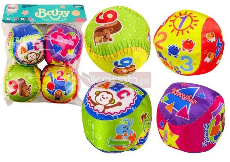 Zestaw 4 miękkich piłek dla dzieci to edukacyjna i interaktywna zabawka, która łączy w sobie naukę i zabawę. Każda piłeczka w zestawie ma unikalne motywy, które wspierają naukę poprzez zabawę. Kolorowe ilustracje zwierzątek i cyfr, pomagające dzieciom w nauce liczenia oraz rozpoznawania różnych zwierząt. Piłeczka z rysunkami podstawowych figur geometrycznych, każda podpisana w języku angielskim, co wprowadza dzieci w świat języka obcego oraz geometrii. Litery alfabetu ozdobione obrazkami zwierząt, co ułatwia naukę liter i ich dźwięków w zabawny sposób. Piłeczki są bardzo kolorowe, co przyciąga uwagę dzieci i stymuluje ich zmysł wzroku. Każda piłeczka zawiera grzechotkę, która wydaje delikatne dźwięki przy potrząsaniu, co rozwija zmysł słuchu dziecka i czyni zabawę jeszcze bardziej angażującą. Piłeczki są wykonane z miękkiego materiału, który jest przyjemny w dotyku i bezpieczny dla małych rączek. Każda piłeczka ma średnicę 10 cm, co sprawia, że są idealne do chwytania, turlania i podrzucania przez dzieci. Ten zestaw piłek to nie tylko zabawka, ale także narzędzie wspomagające wczesną edukację dzieci.Dzięki różnorodnym motywom, maluchy mogą uczyć się liter, cyfr i kształtów, jednocześnie rozwijając swoje zdolności motoryczne i sensoryczne. To doskonały wybór dla rodziców, którzy chcą połączyć zabawę z nauką w codziennych aktywnościach swojego dziecka. Średnica piłki: 10 cm Zabawki przeznaczone są dla dzieci od 3 miesiąca życia. Piłeczki posiadają certyfikat CE i są zgodne z normą EN 71.
