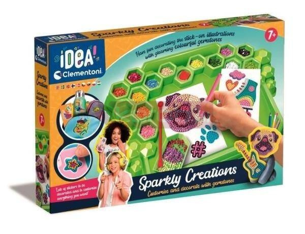 W zestawie ilustrowana instrukcja, objaśniająca dzieciom każdy etap, oraz specjalne pióro do chwytania kamyków i kolorowe, ponumerowane kartki, aby ułatwić naklejanie kryształków.