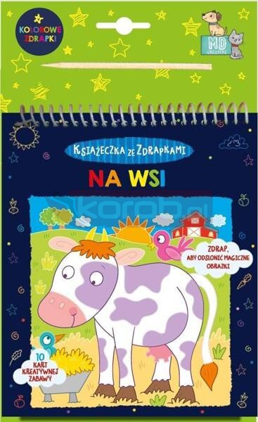 Książeczka na spirali z 20 kolorowymi ilustracjami (w tym 10 w formie zdrapek) to zaproszenie do nauki przez kreatywną zabawę. Zdrapując rysikiem niebieską warstwę z obrazków, dziecko ćwiczy koordynację wzrokowo-ruchową i stopniowo odkrywa rozmaite elementy: zwierzęta, rośliny, przedmioty. Jednocześnie może wykazać się pomysłowością i "wydrapać" na wybranych fragmentach swoje wzorki albo napisy. Oprócz ilustracji w książeczce znajdują się także ciekawe opisy z różnymi zadaniami, dzięki którym dziecko nauczy się nowych słów, będzie ćwiczyć liczenie, ortografię i spostrzegawczość.