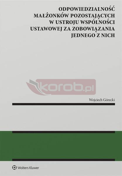 Opracowanie zawiera całościowe omówienie problematyki materialnoprawnej i egzekucyjnej dotyczącej odpowiedzialności małżonków pozostających w ustroju wspólności ustawowej za zobowiązania cywilnoprawne jednego z nich. W kompleksowy sposób przedstawia analizę regulacji materialnoprawnej tego zagadnienia zamieszczoną w art. 41 k.r.o. oraz kwestie proceduralne związane z realizacją w postępowaniu egzekucyjnym odpowiedzialności małżonków majątkiem wspólnym, w tym problem obrony małżonków przed egzekucją. Autor omawia istotne zagadnienia rzadko poruszane w literaturze przedmiotu, takie jak m. in.: status małżonka dłużnika jako osoby odpowiadającej za cudzy dług; odpowiedzialność małżonków za zobowiązania niepieniężne; stosowanie art. 41 k.r.o. w przypadkach zaspokojenia wierzyciela przez jednego z małżonków będącego dłużnikiem solidarnym; charakter prawny tzw. zgody fakultatywnej małżonka dłużnika: jej przedmiot i zakres, udzielanie w sposób dorozumiany i pod warunkiem, dopuszczalność udzielania przed powstaniem ustroju wspólności majątkowej między małżonkami, odwołanie zgody oraz dopuszczalność modyfikacji jej treści przez małżonka dłużnika; umowna modyfikacja treści kompetencji wierzyciela do żądania zaspokojenia z majątków małżonków. Rozważania zamieszczone w pracy mają nie tylko walor teoretyczny, lecz są także zorientowane na rozwiązywanie problemów praktycznych. Książka jest przeznaczona przede wszystkim dla sędziów, komorników, adwokatów i radców prawnych. Notariuszy mogą zainteresować fragmenty dotyczące poddania się egzekucji w akcie notarialnym przez małżonka będącego dłużnikiem oraz przez drugiego małżonka odpowiadającego wyłącznie majątkiem wspólnym za długi współmałżonka, a także udzielania przez małżonka dłużnika zgody, o której mowa w art. 41 par. 1 k.r.o., w tym m. in.: formy zgody, dopuszczalności zgody generalnej i rodzajowej oraz udzielania zgody pod warunkiem lub z zastrzeżeniem terminu.