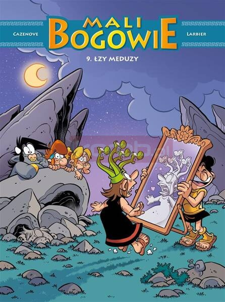 Dziewiąta część wesołych przygód niezbyt rozgarniętych kandydatów na bogów i herosów starożytnego Olimpu. Meduza jest załamana tym, że każdy człowiek, który spojrzy jej w oczy, zamienia się w kamień. W dodatku pojawia się Perseusz z zadaniem zdobycia głowy sympatycznej wężowej potworzycy. Na szczęście śmiałek nie grzeszy skutecznością. Jak zwykle rozśmieszą nas też żarłok Taurusek, nieporadny Herakles, nieznający się na żeglowaniu Odyseusz czy pomysłowy wynalazca Hefajstos. Autorami historii o psotnych istotach z mitów są scenarzysta Christophe Cazenove, znany w Polsce między innymi z bestsellerowej serii "Sisters", oraz rysownik Philippe Larbier, który stworzył ilustracje do takich humorystycznych opowieści jak "Chats, chats, chats" czy "Nina" oraz scenariusz kryminalnego cyklu dla dzieci "Les Enigmes de La".
