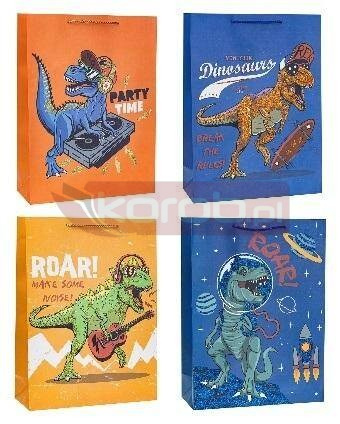 Torebka z brokatem Dinozaur 31x40x12cm A3, mix 4 wzorów