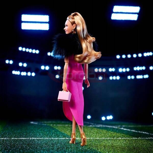Barbie uhonoruje udany serial telewizyjny Ted Lasso lalką Barbie! Keeley Jones jest w pewnym stopniu znana ze swojej bliskiej sławy i stała się konsultantem ds. PR. Lalka Keeley Jones Barbie ma na sobie jedwabną sukienkę midi w kolorze jasnoróżowym ze stójką, szykowne złote szpilki i czarną pelerynę ze sztucznym futrem. Jej wspaniały strój wieczorowy jest uzupełniony charakterystycznym wysokim kucykiem, charakterystycznymi złotymi kolczykami oraz niezwykle słodką różową torebką. Niezależnie od tego, czy chodzi po czerwonym dywanie, czy rozpala Richmond Blue, lalka Keeley Barbie jest zawsze pewna siebie i stylowa. Kolekcja Barbie x Ted Lasso z innymi lalkami kolekcjonerskimi zapewnia jeszcze więcej radości z zabawy inspirowanej serią.