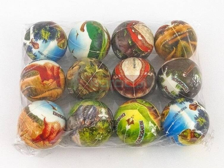 Piłeczki piankowe 73mm - wzór w dinozaury 12szt