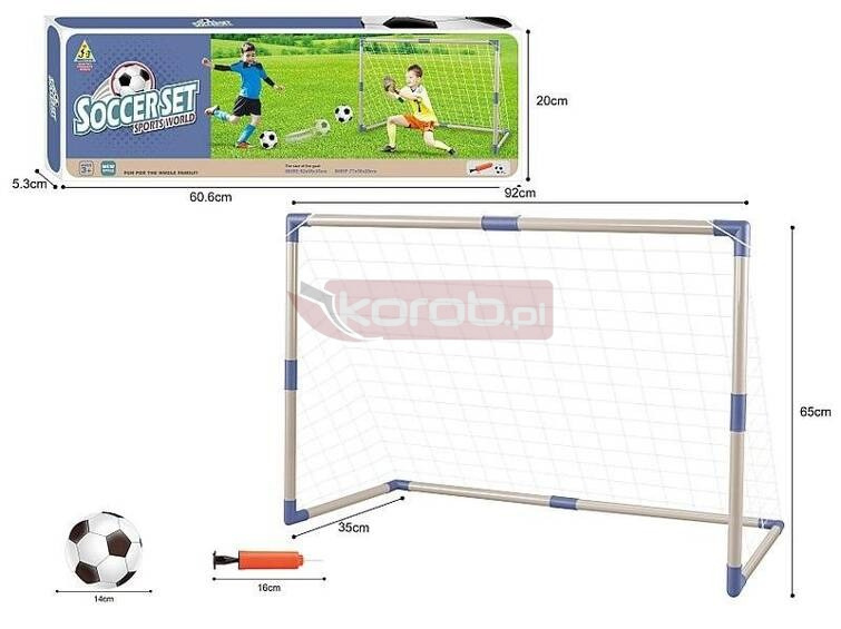 Zestaw do gry w piłkę nożną, rozkładana bramka, piłka, pompka; 6,5x20x5cm, Box