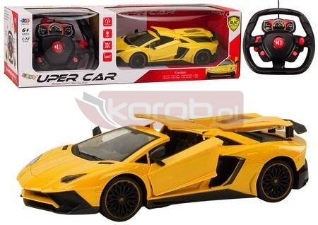 Samochód Sportowy Zdalnie Sterowany RC 1:12 Otwierane Drzwi Żółty Samochód sportowy w kolorze żółtym w skali 1:12, to urzekający model, który przyciąga uwagę każdego miłośnika motoryzacji. Jego dynamiczny design odzwierciedla esencję sportowego stylu, zachwycając zarówno dzieci, jak i dorosłych. Zdalne sterowanie poprzez pilota 27HZ w kształcie kierownicy nie tylko zapewnia dużą frajdę, ale także sprawia, że każde dziecko czuje się jak prawdziwy kierowca, eksplorując świat z dala od zasięgu ręki. Niezwykłe możliwości pilota dodają jeszcze więcej realizmu i interaktywności. Funkcje otwierania i zamykania drzwi, dachu oraz bagażnika zapewniają autentyczne doznania, pozwalając na kreowanie własnych scenariuszy zabawy. Dodatkowo, samochód wyposażony jest w efekty świetlne oraz dźwiękowe, które intensyfikują doznania związane z zabawą. Te szczegóły sprawiają, że każda jazda staje się wyjątkowym przeżyciem, wzbogacającym wyobraźnię. Precyzyjne wykonanie oraz dbałość o detale, takie jak malowane karoseria czy realistyczne detale wnętrza, sprawiają, że ten samochód staje się nie tylko zabawką, ale również narzędziem do rozwijania wyobraźni i kreatywności. Dzięki niemu dzieci mogą wcielać się w różne role i kreować własne historie, gwarantując godziny niezapomnianej zabawy i radości. Samochód zasilany jest na akumulator 6V 700mAh, który jest elementem zestawu. Do akumulatora dołączona jest ładowarka. Pilot zasilany jest na baterie 2x 1.5V AA, które nie są elementem zestawu. Wymiary samochodu: 33,5cm x 13,5cm x 7,5cm Wymiary opakowania: 60cm x 20cm x 18cm Posiada certyfikat CE, ponadto jest zgodny z normą EN71. Przeznaczony dla dzieci powyżej 6 roku życia.