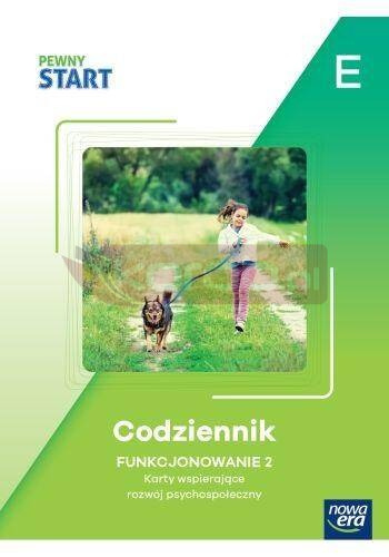 Publikacja Pewny Start. Poziom E. Codziennik. Funkcjonowanie 2 to 100 ilustrowanych kart zawierających treści wspierające rozwój psychospołeczny. Materiał jest zgodny z podstawą programową. W publikacji znajdują się elementy do wycięcia, składania i manipulacji.