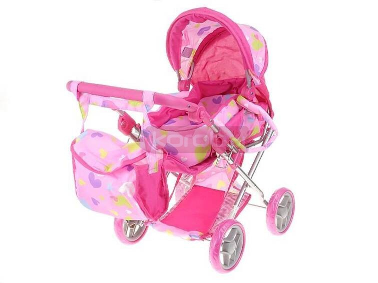 wózek głęboki dla lalek, profilowana rączka, nosidełko, torba, z koszem funkcja spacerówki, wymiary: 66x58x36cm, BOX