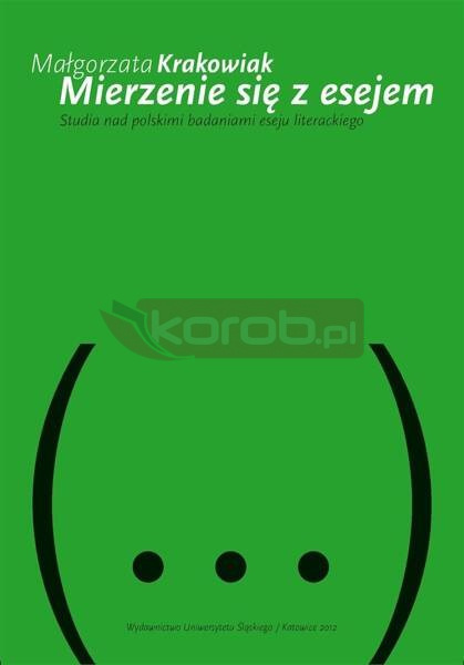 Mierzenie się z esejem to książka o tym, jak zakorzeniał się esej literacki w polskiej świadomości literackiej XX wieku, jak pisywali o tej formie badacze i krytycy oraz jak różnie pojmowany jest sam termin "esej". Autorka proponuje przyjęcie modelu teoretycznego gatunku oraz przedstawia hipotezy dotyczące ewolucji form wyprowadzanych z eseju. Część zatytułowana Obecność eseju w literaturze polskiej to historyczne ujęcie zagadnienia. Autorka przyjęła założenie, że świadome pisanie esejów - jako utworów wyraźnie odróżniających się od innych - datuje się od lat dwudziestych minionego wieku. Odrębną, równolegle wyodrębniającą się kwestią było zakorzenianie się nazwy "esej" w świadomości uczestników polskiego życia literackiego oraz rozmaite propozycje określenia jej zakresu. W części nazwanej W kręgu teorii znalazło się pięć przekrojowych ujęć eseju, traktowanego już jako określony model genologiczny. Analizując różne stanowiska teoretyczne oraz obserwując współczesne tendencje językowe, Autorka przedstawiła najpierw nieporozumienia terminologiczne i zaproponowała (w celu zyskania efektywności komunikacyjnej) uściślenie desygnatu nazwy. Ukazała skomplikowane z dzisiejszego punktu widzenia uwarunkowania orzekania o literackości eseju oraz rozpowszechnianie się form pisarskich, wykształcających się z eseju literackiego w jego tradycyjnej postaci (wciąż zyskującej nowe realizacje tekstowe).