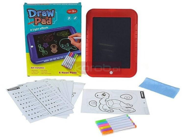 magiczna tablica, świecąca w ciemności, 30 szablonów, 6 neonowych flamastrów; 26x20x2,5cm, Box