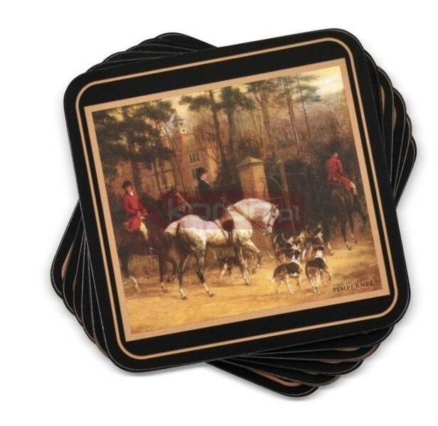 Zestaw sześciu przepięknych i wyjątkowo praktycznych podkładek korkowych, ozdobionych reprodukcjami wspaniałych obrazów przedstawiających angielską arystokrację wyruszającą na polowanie z kolekcji Tally Ho.Podkładki wykonane są z wytrzymałego korka o grubości 5 mm i całkowicie uszczelnione wysokiej jakości lakierowaną powłoką. Dzięki czemu bardzo dobrze izolują wysoką i niską temperaturę, chroniąc blaty, stoły i inne powierzchnie przez uszkodzeniem. Podkładki są odporne na plamy i wysoką temperaturę do 100 C. Należy je czyścić wilgotną gąbką. Nie zaleca się zanurzać w wodzie i wkładać do zmywarki. Zestaw zawiera: 6 szt.
