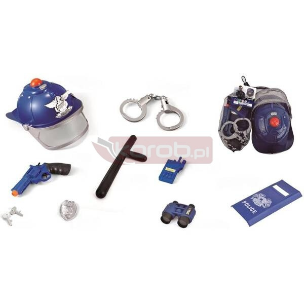 Zestaw małego policjanta to wymarzona zabawka dla każdego dziecka lubiącego służby mundurowe. Umożliwi maluchowi wcielenie się w postać profesjonalnego policjanta. Zestaw składa się z 9 elementów, które przedstawiają podstawowe sprzęty używane przez policjantów. Kask policjanta z efektami świetlno-dźwiękowymi, zaprojektowany tak, aby odzwierciedlał prawdziwy kask, sprawia, że zabawa staje się jeszcze bardziej realistyczna i ekscytująca.