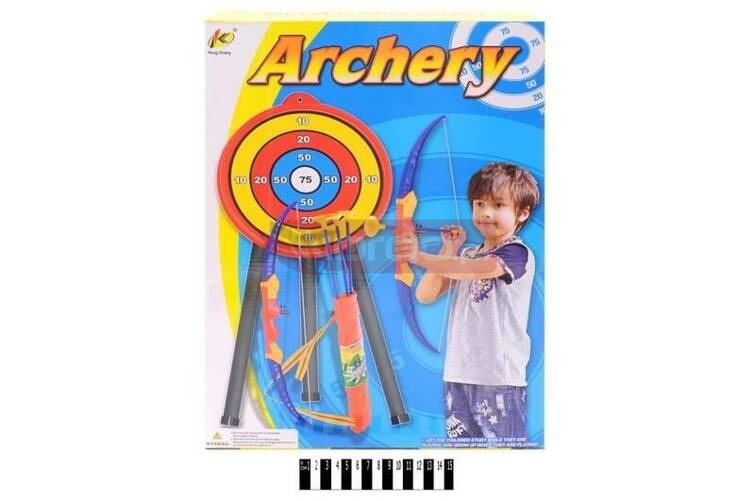 W komplecie łuk, tarcza, strzałki z pokrowcem.