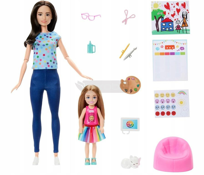 LALKA BARBIE + CHELSEA ARTETERAPEUTA zestaw do zabawy z dwiema lalkami HRG48