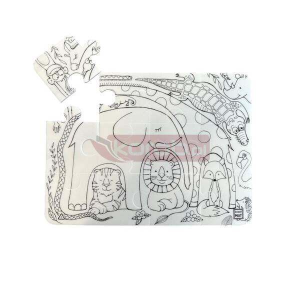 Wielokrotnego użytku wodoodporne puzzle do składania, rysowania i malowania. Idealny produkt do rozwijania wyobraźni, pobudzenia kreatywności, pełni też funkcje edukacyjne. Do pomalowania puzzli użyj flamastrów z tuszem na bazie wody. Flamastry zmywają się po umieszczeniu puzzli pod bieżącą wodą lub przy użyciu mokrej ściereczki, dzięki czemu produkt może być używany wielokrotnie. Można użyć także kredek ołówkowych oraz miękkich ołówków, ale wyczyszczenie powierzchni puzzli będzie możliwe tylko za pomocą gumki do ścierania. Produkt wykonany w całości z najwyższej jakości tworzyw polipropylenowych. Wystarczy rozłożyć puzzle na płaskiej powierzchni, pokolorować je wybranymi kolorami i cieszyć się powstałym obrazem.